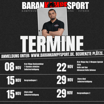 Wenn du dich eher für effektive Selbstverteidigung interessierst, dann solltest du zu unserem Krav Maga Basic-Kurs kommen - montags und mittwochs 20 Uhr.